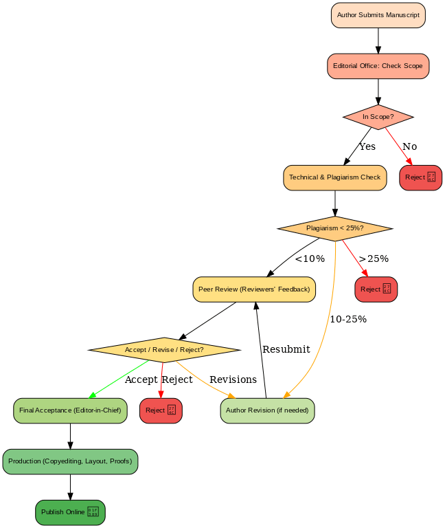 - Once reviewers and editors are satisfied, the Editor-in-Chief gives final approval.